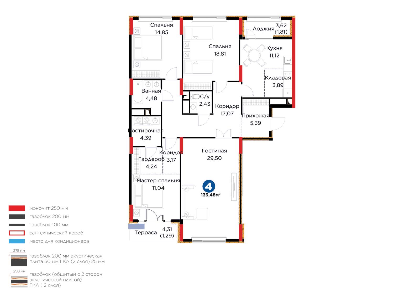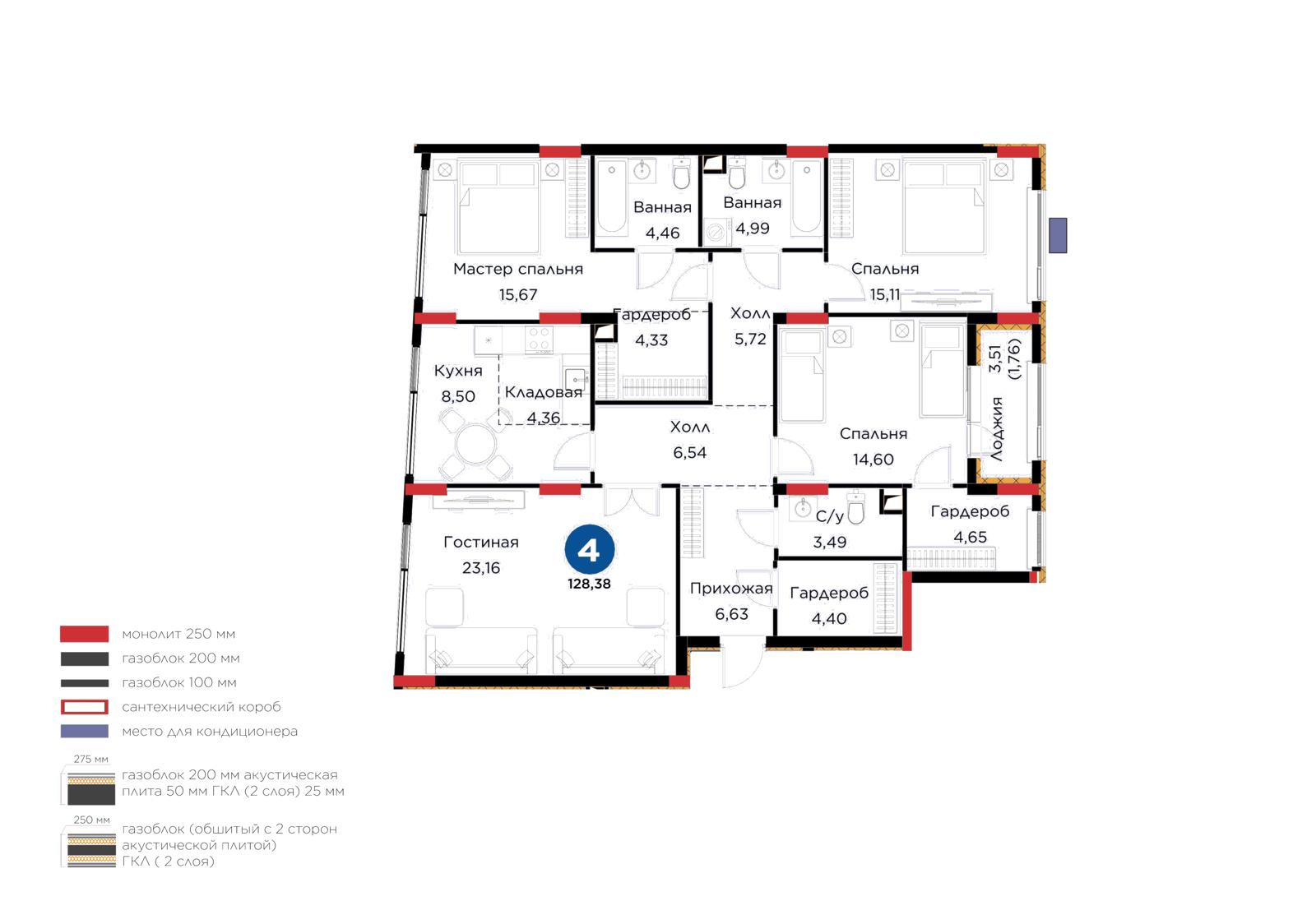 4-комн., 133.48 м², 8 этаж из 9 г. Астана, ул. Ш. Калдаякова ЖК Auez Park