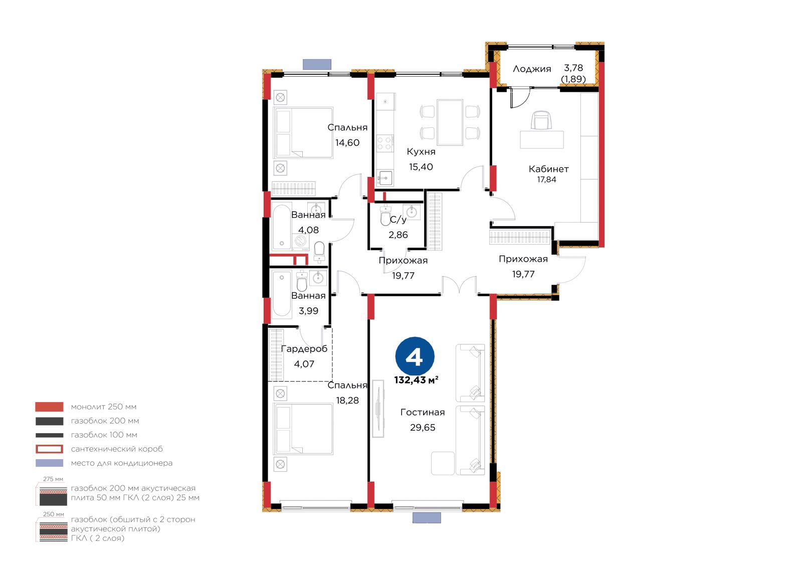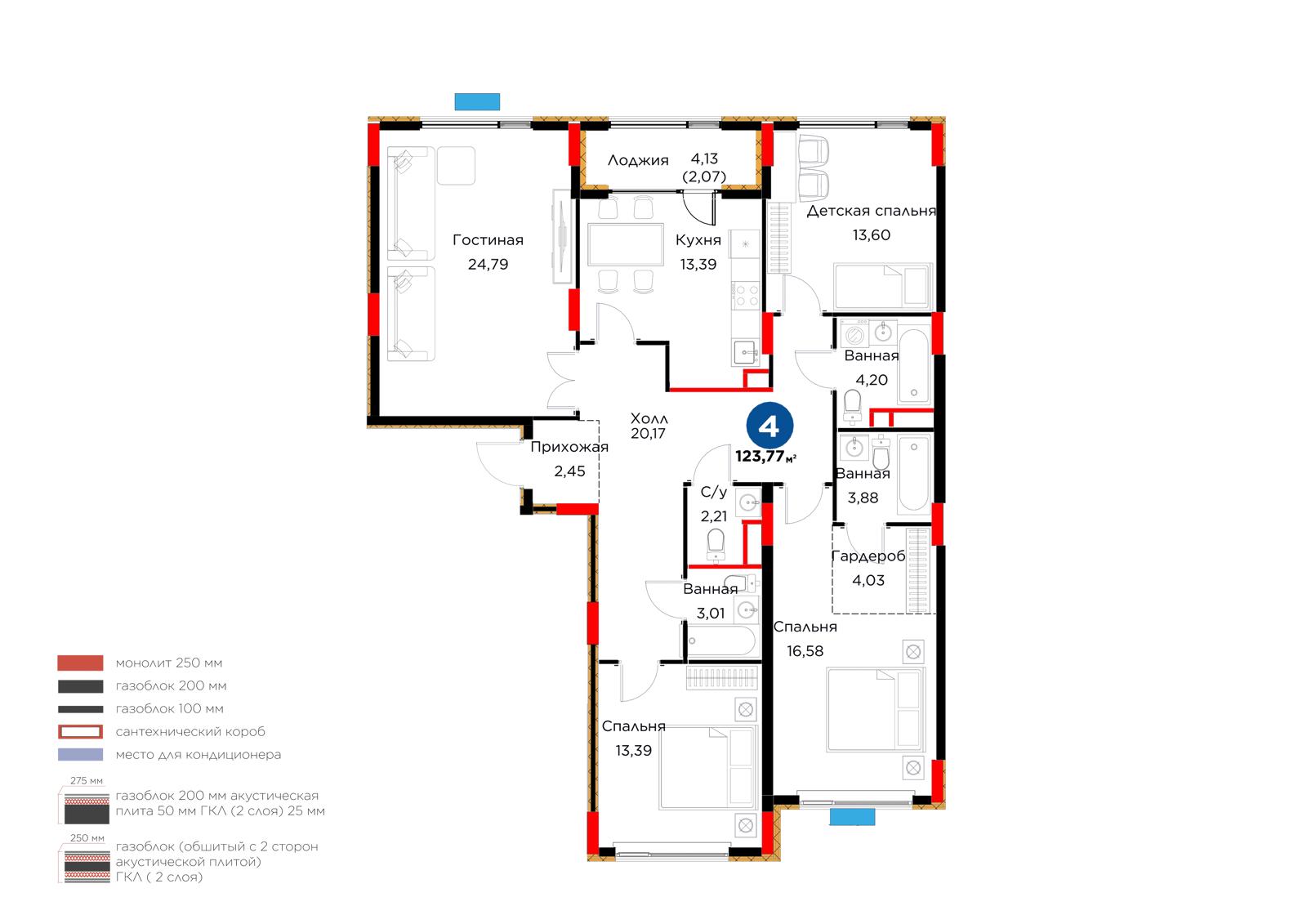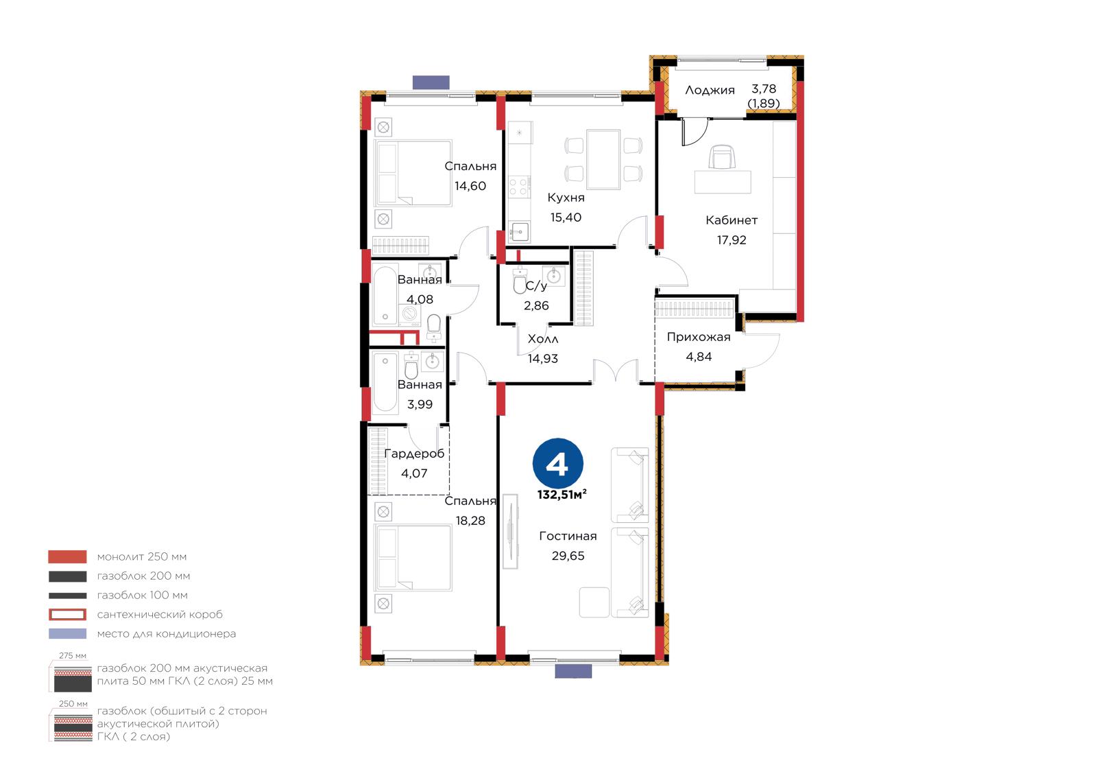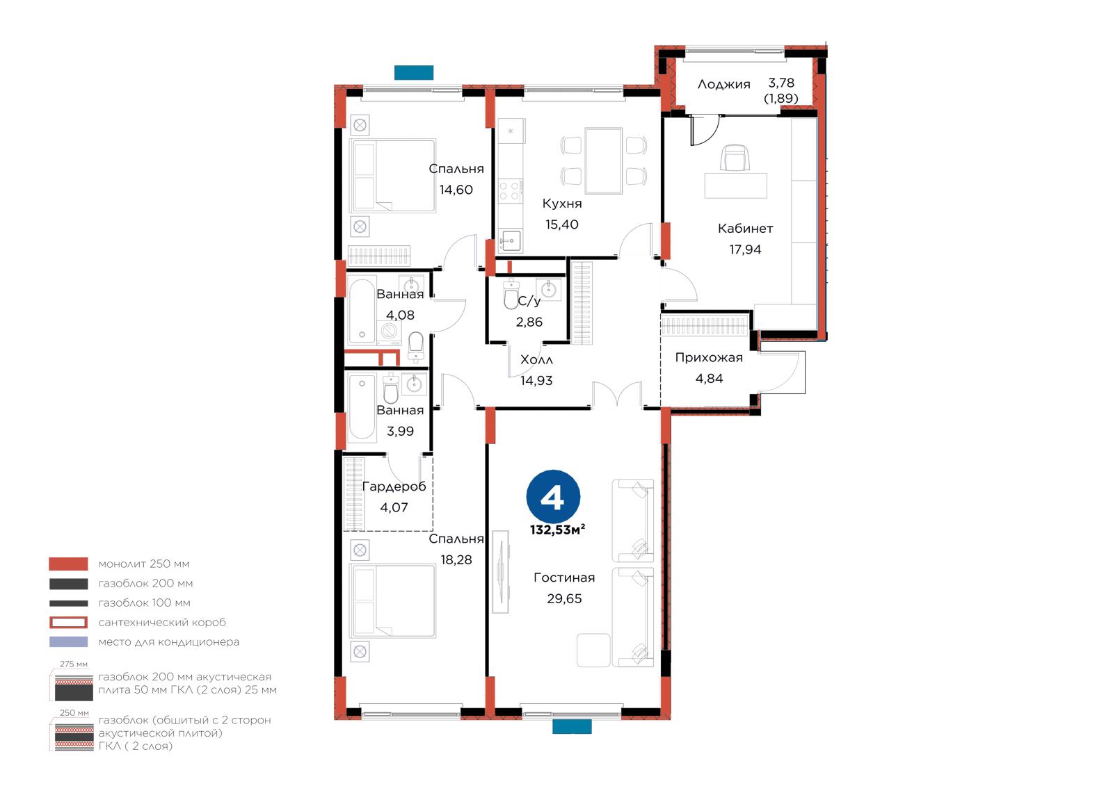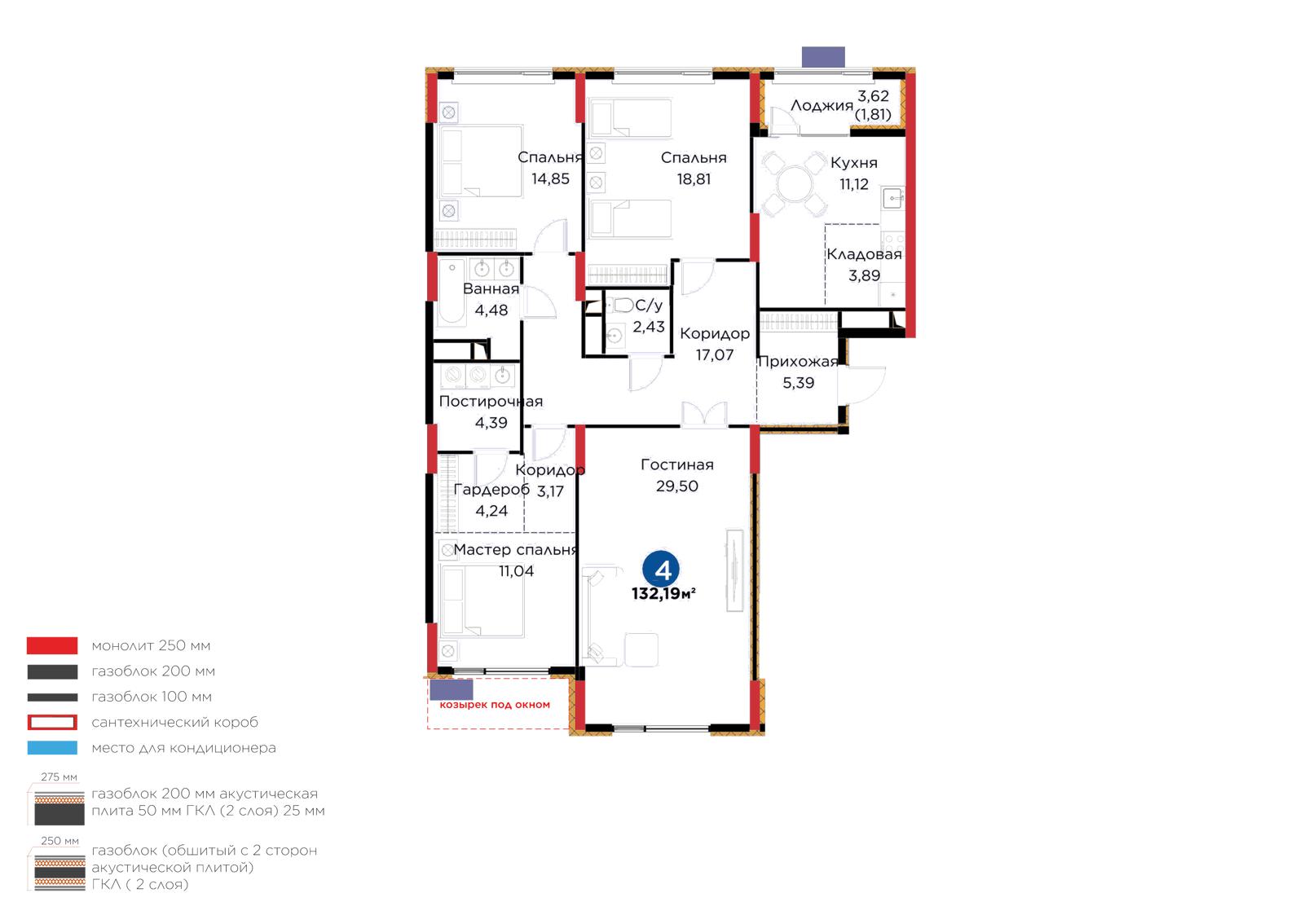 4-комн., 132.53 м², 4 этаж из 9 г. Астана, ул. Ш. Калдаякова ЖК Auez Park