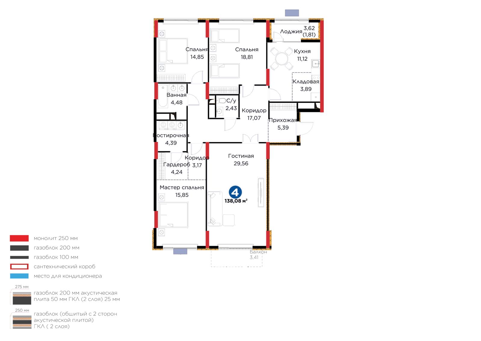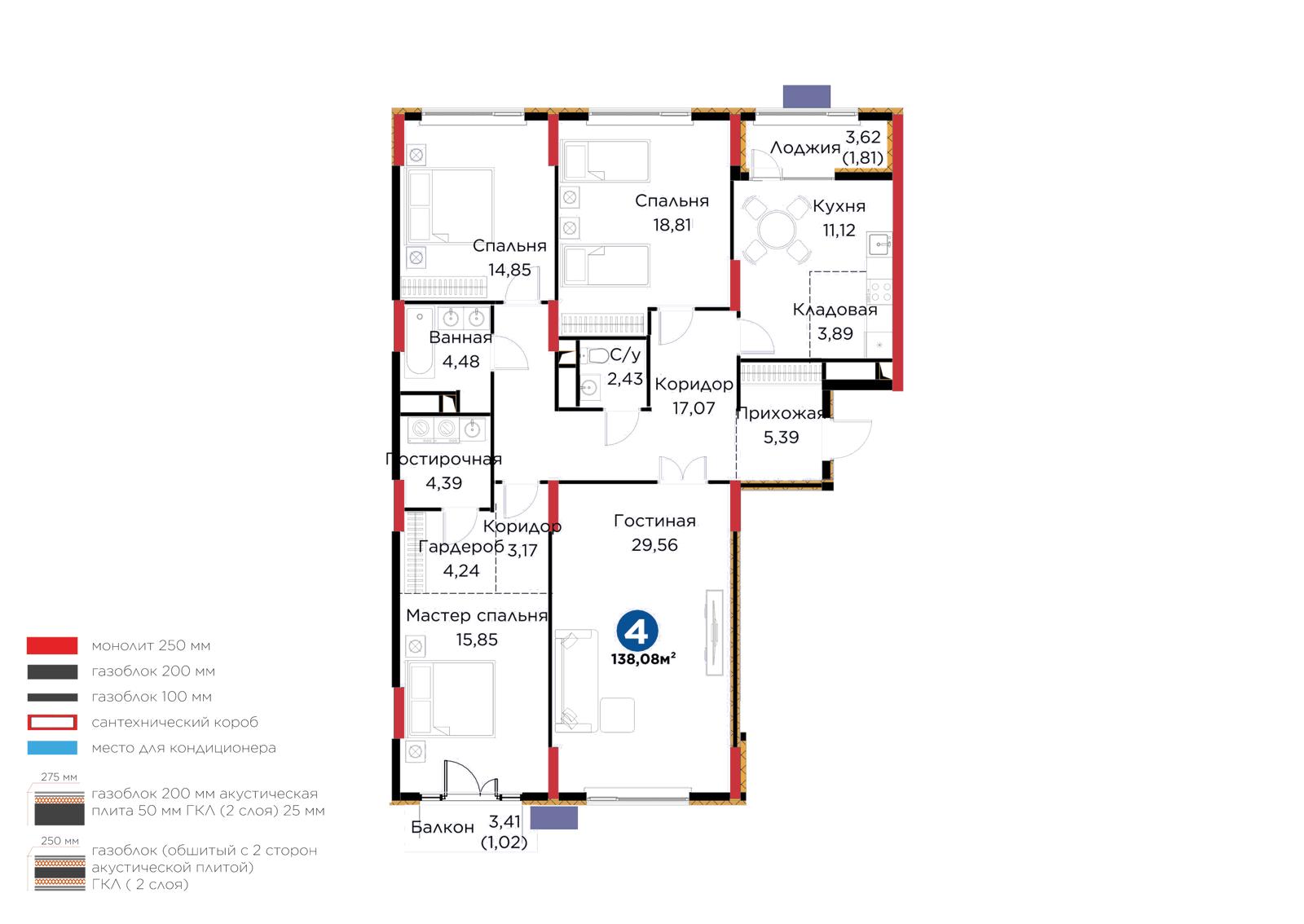 4-комн., 138.08 м², 7 этаж из 9 г. Астана, ул. Ш. Калдаякова ЖК Auez Park