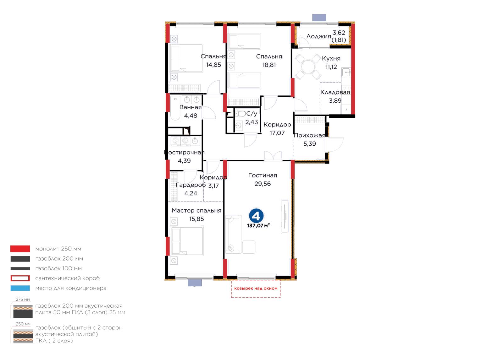 4-комн., 137.07 м², 6 этаж из 9 г. Астана, ул. Ш. Калдаякова ЖК Auez Park