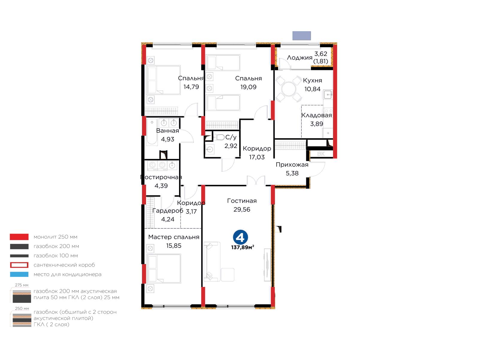 4-комн., 137.89 м², 2 этаж из 9 г. Астана, ул. Ш. Калдаякова ЖК Auez Park