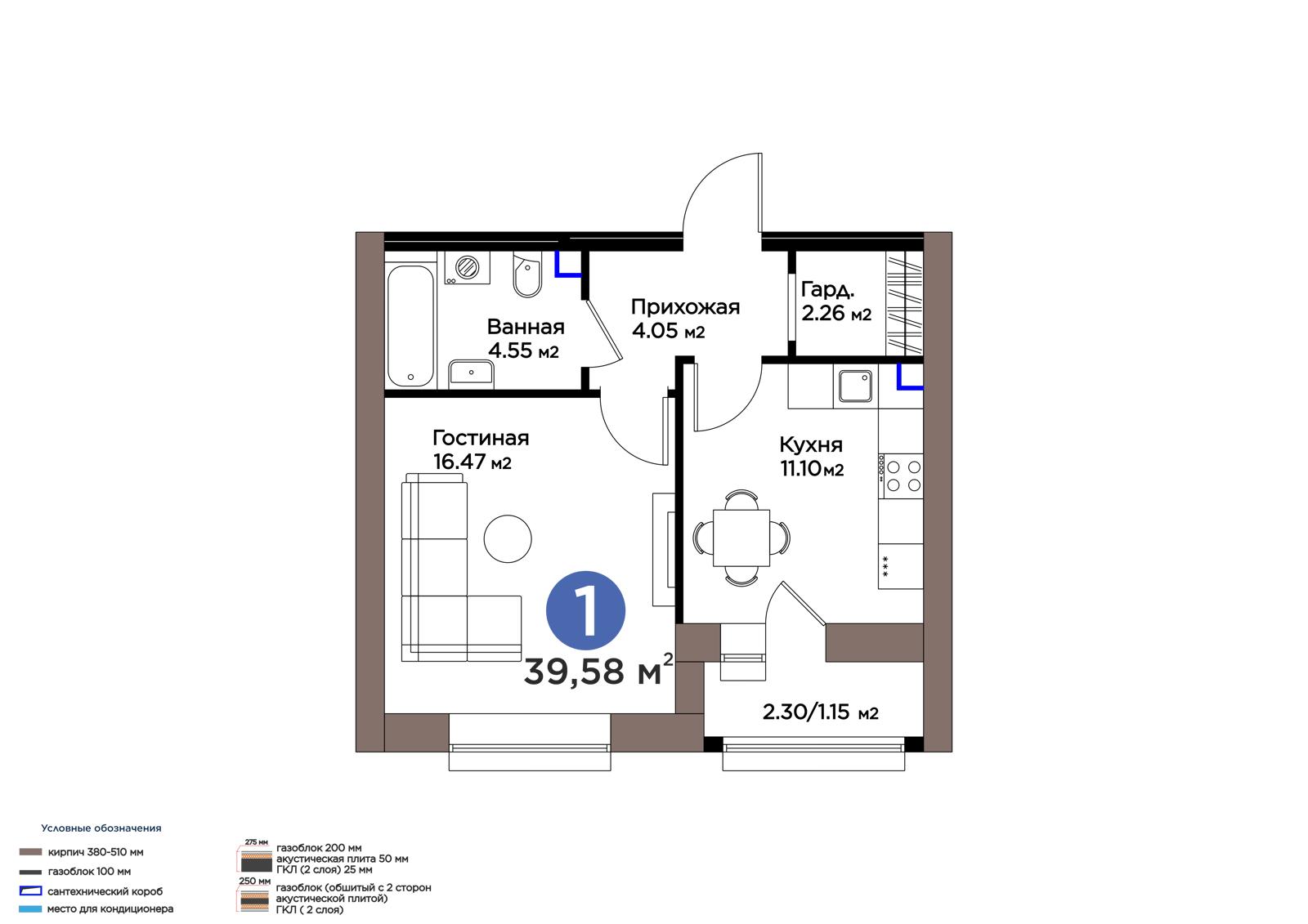 1-комн., 39.58 м², 9 этаж из 9 г. Астана, ул. М. Жумабаева ЖК IZBASAR