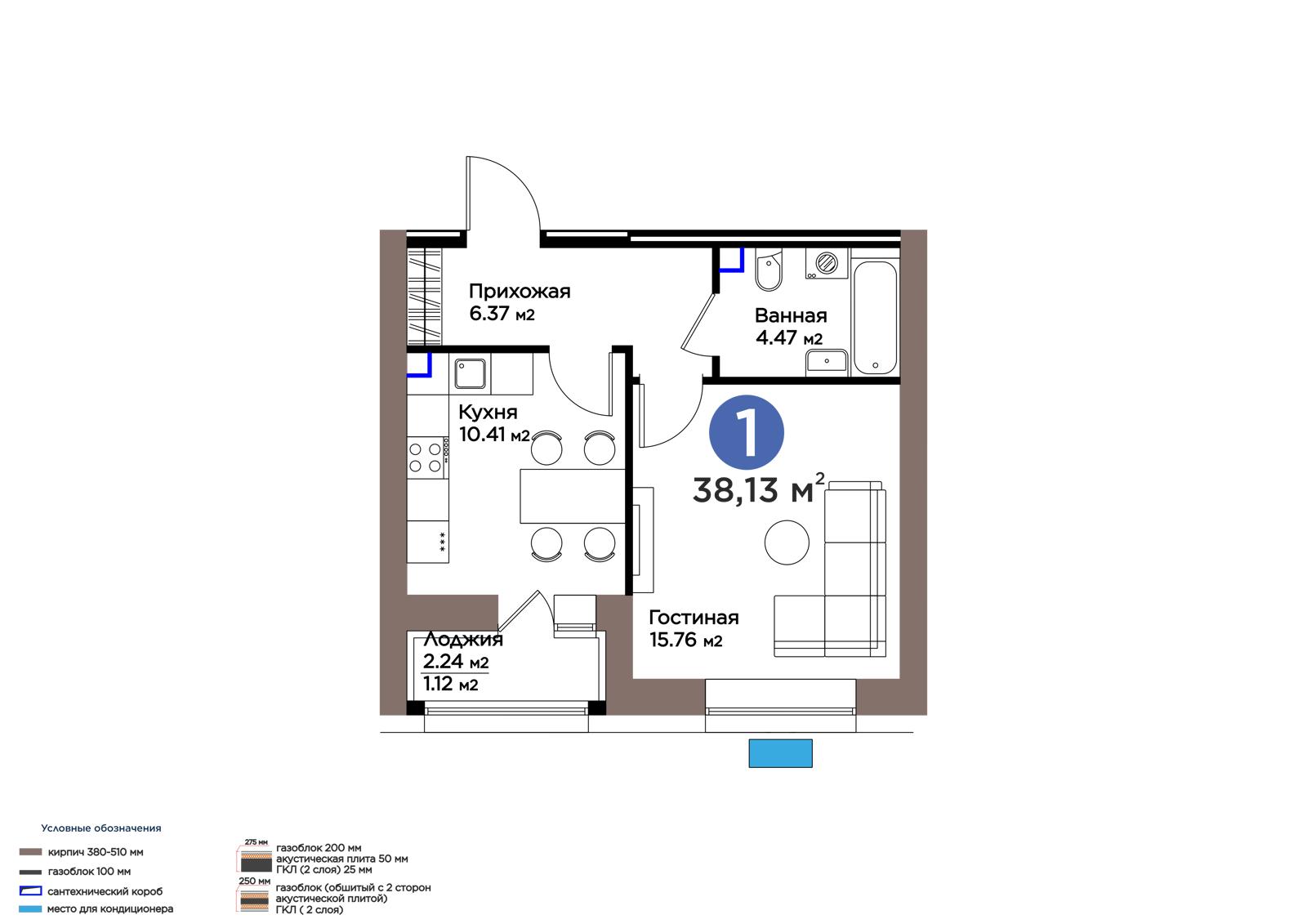 1-комн., 38.13 м², 5 этаж из 9 г. Астана, ул. М. Жумабаева ЖК IZBASAR