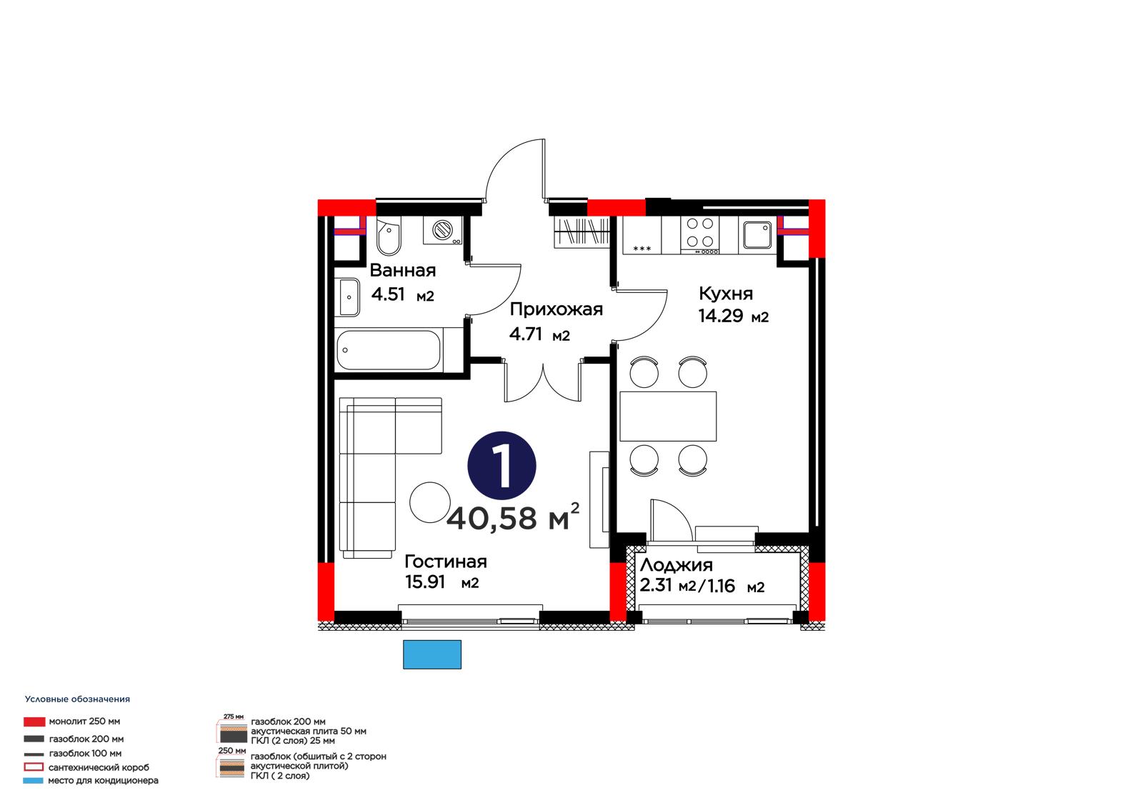 1-комн., 40.58 м², 3 этаж из 9 г. Астана, ЖК Lavita