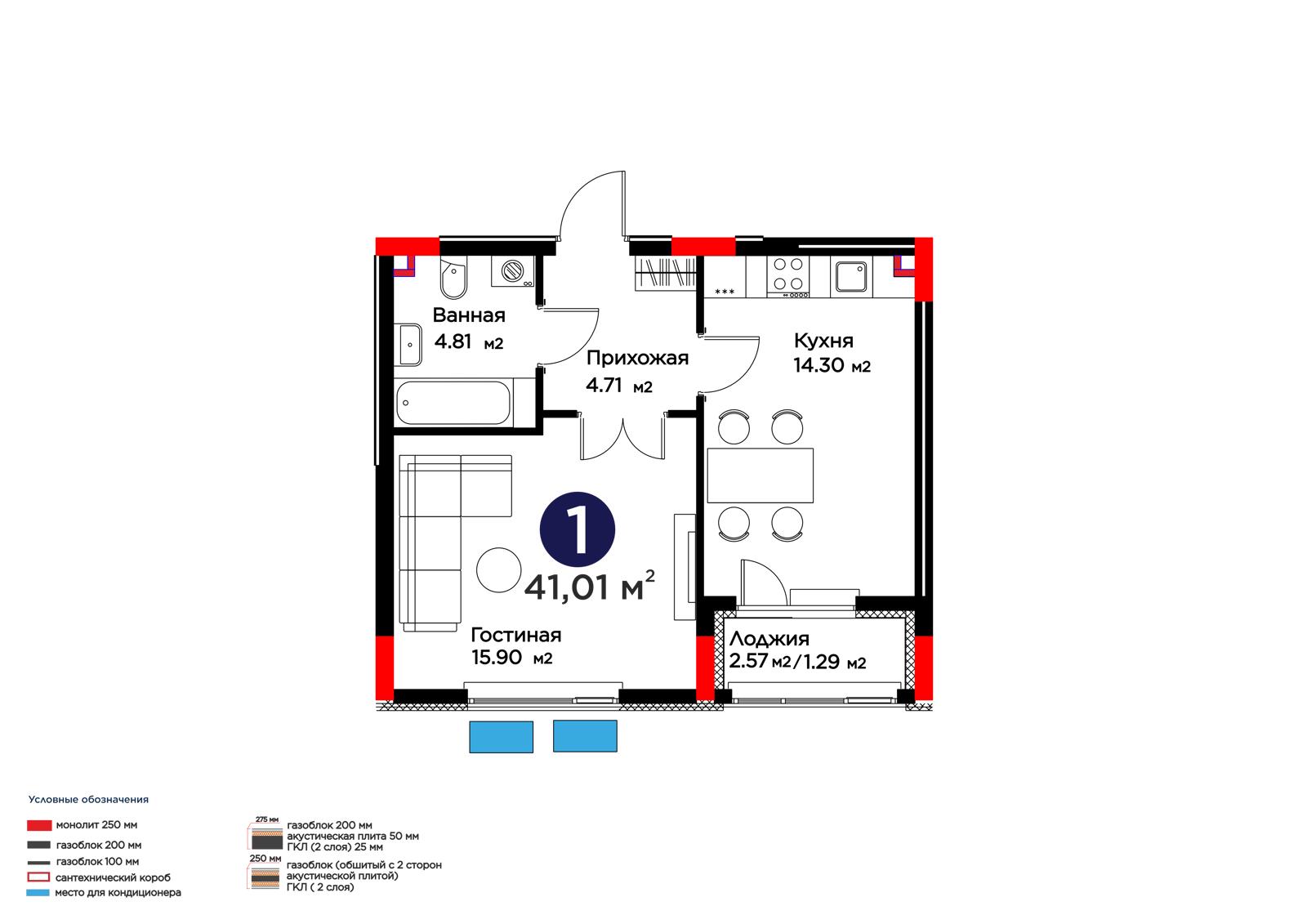 1-комн., 41.27 м², 5 этаж из 9 г. Астана, ЖК Lavita