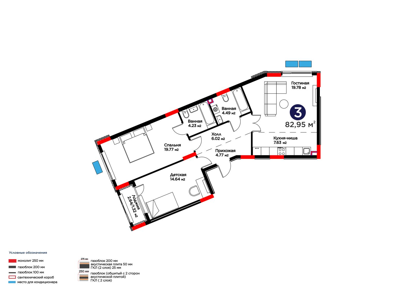 Типичные проекты предполагают несколько планировок трехкомнатных квартир. Наиболее популярной являются объекты с раздельной планировкой. Также высокий спрос отмечается на недвижимость с гостиной, которая чаще всего является самой большой комнатой.