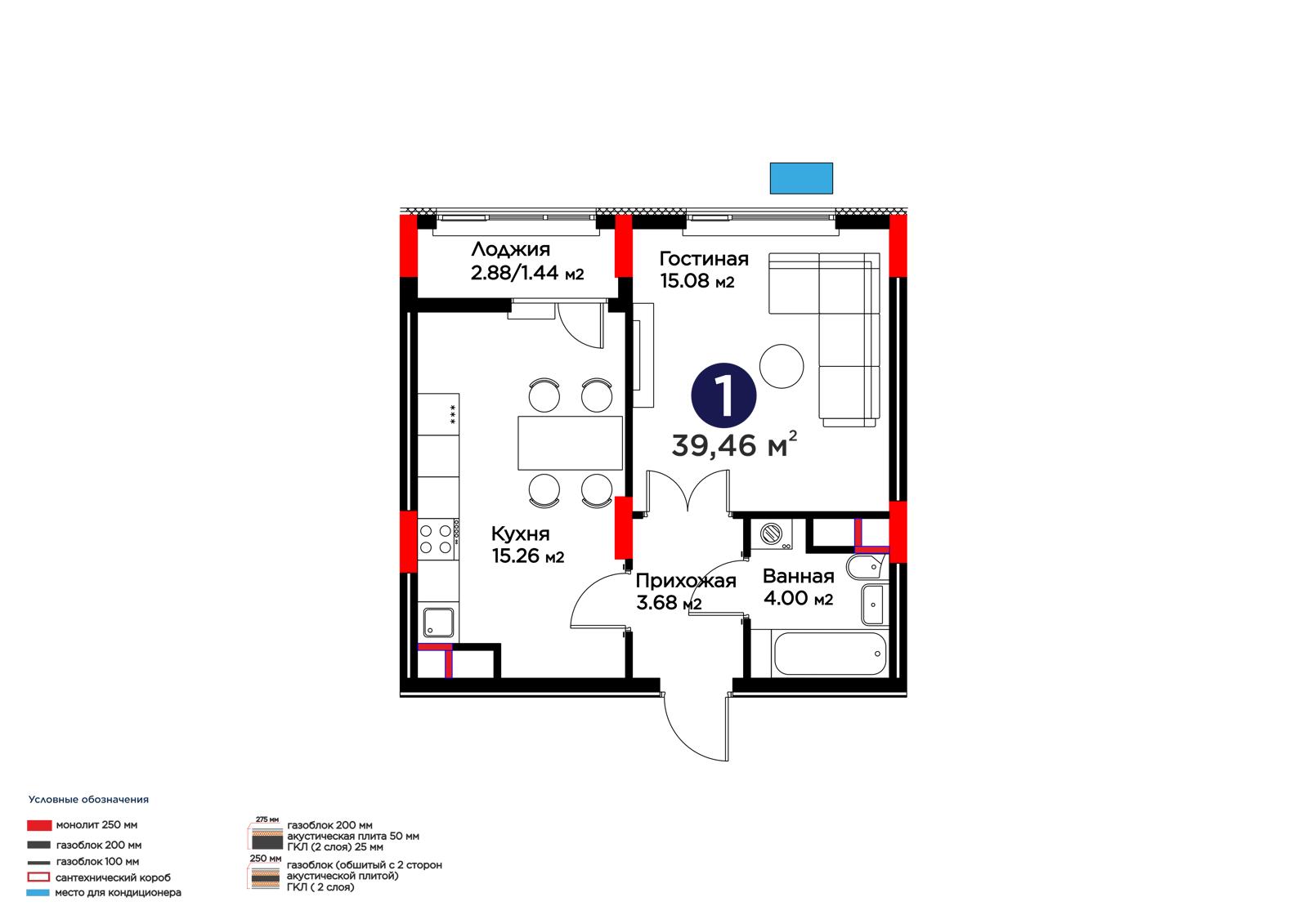 1-комн., 39.46 м², 9 этаж из 9 г. Астана, ЖК Lavita