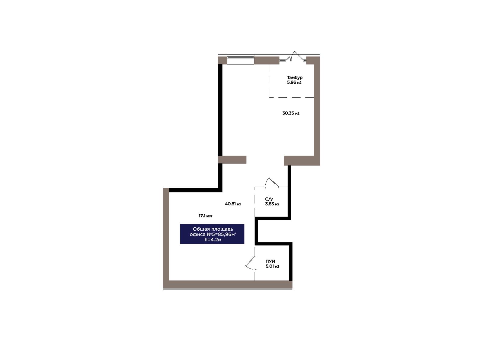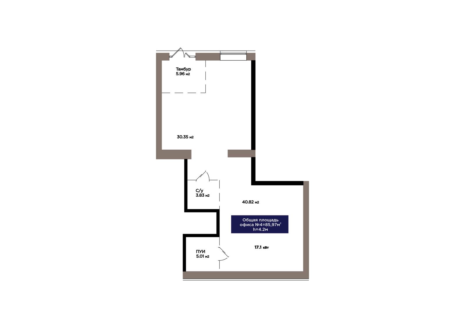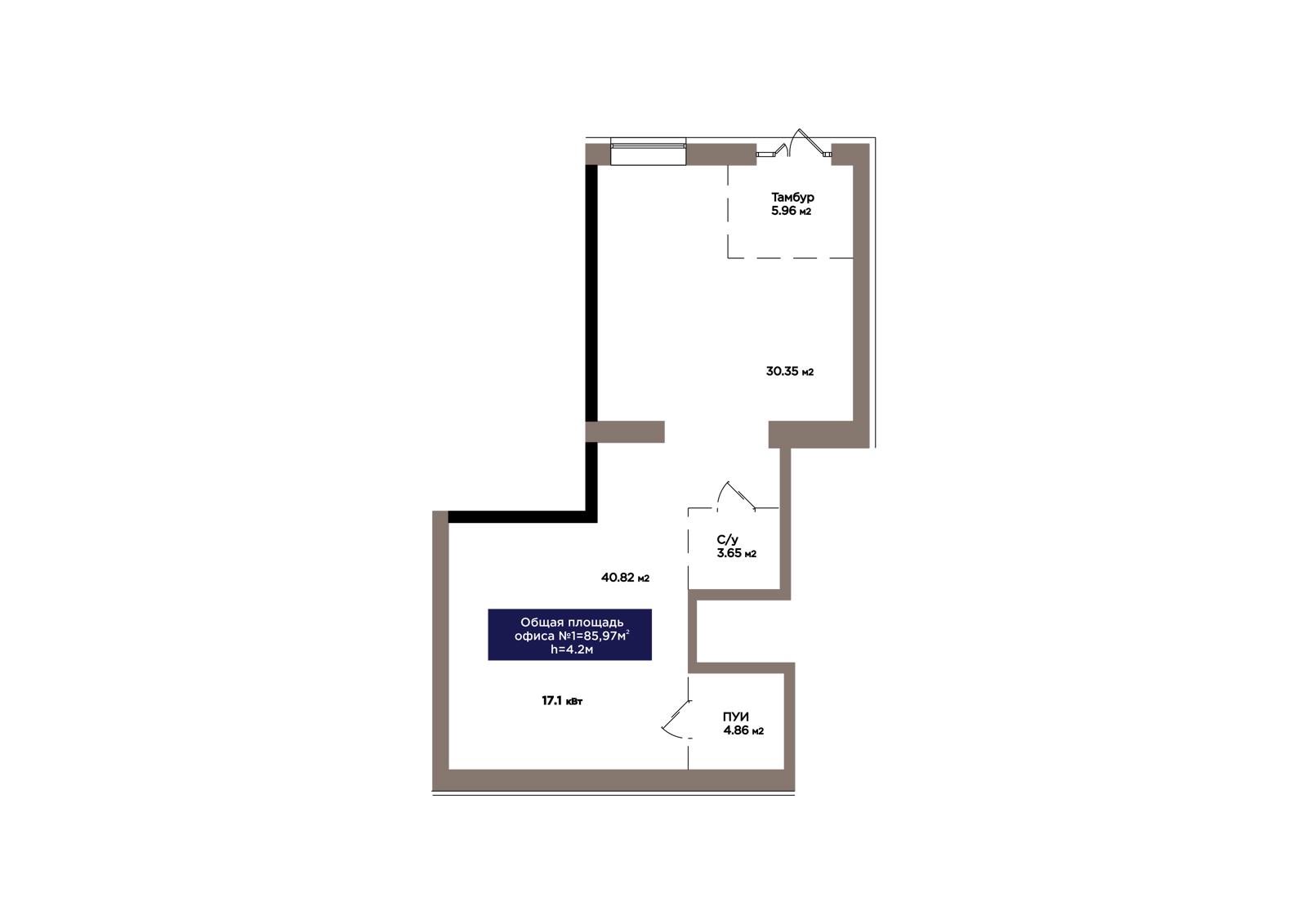 1-комн., 85.96 м², 1 этаж из 9 г. Астана, ЖК OİU