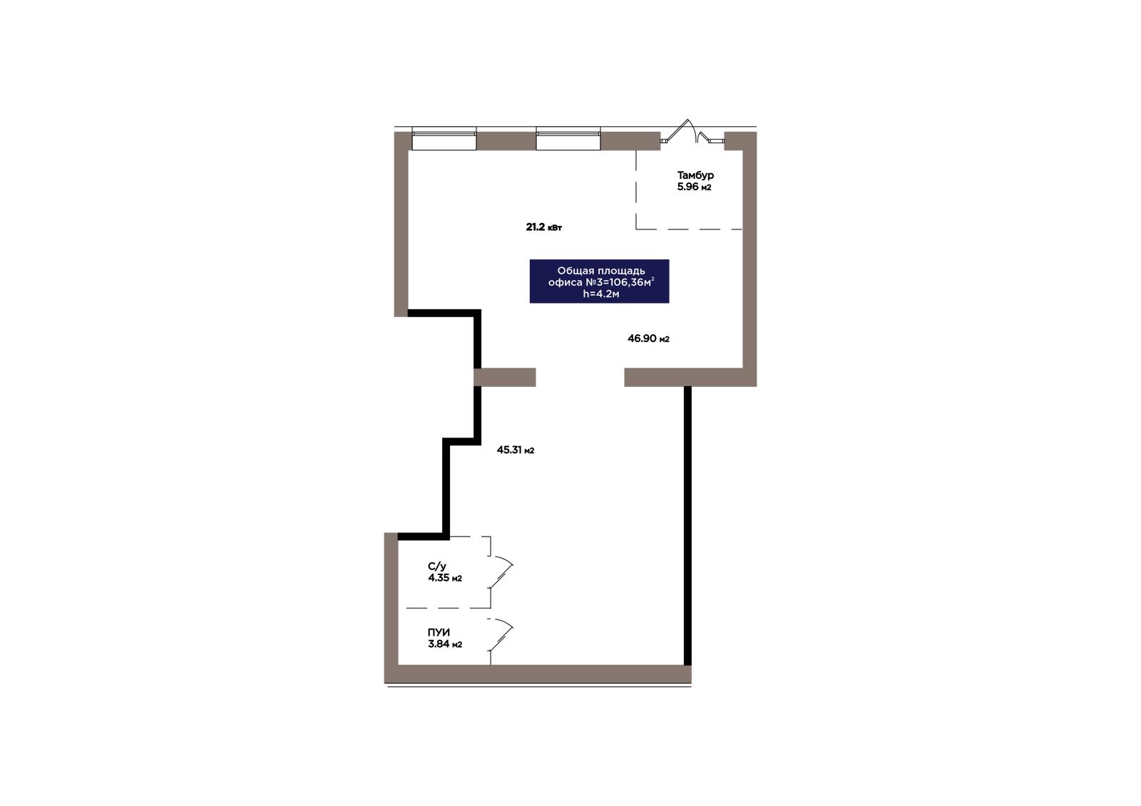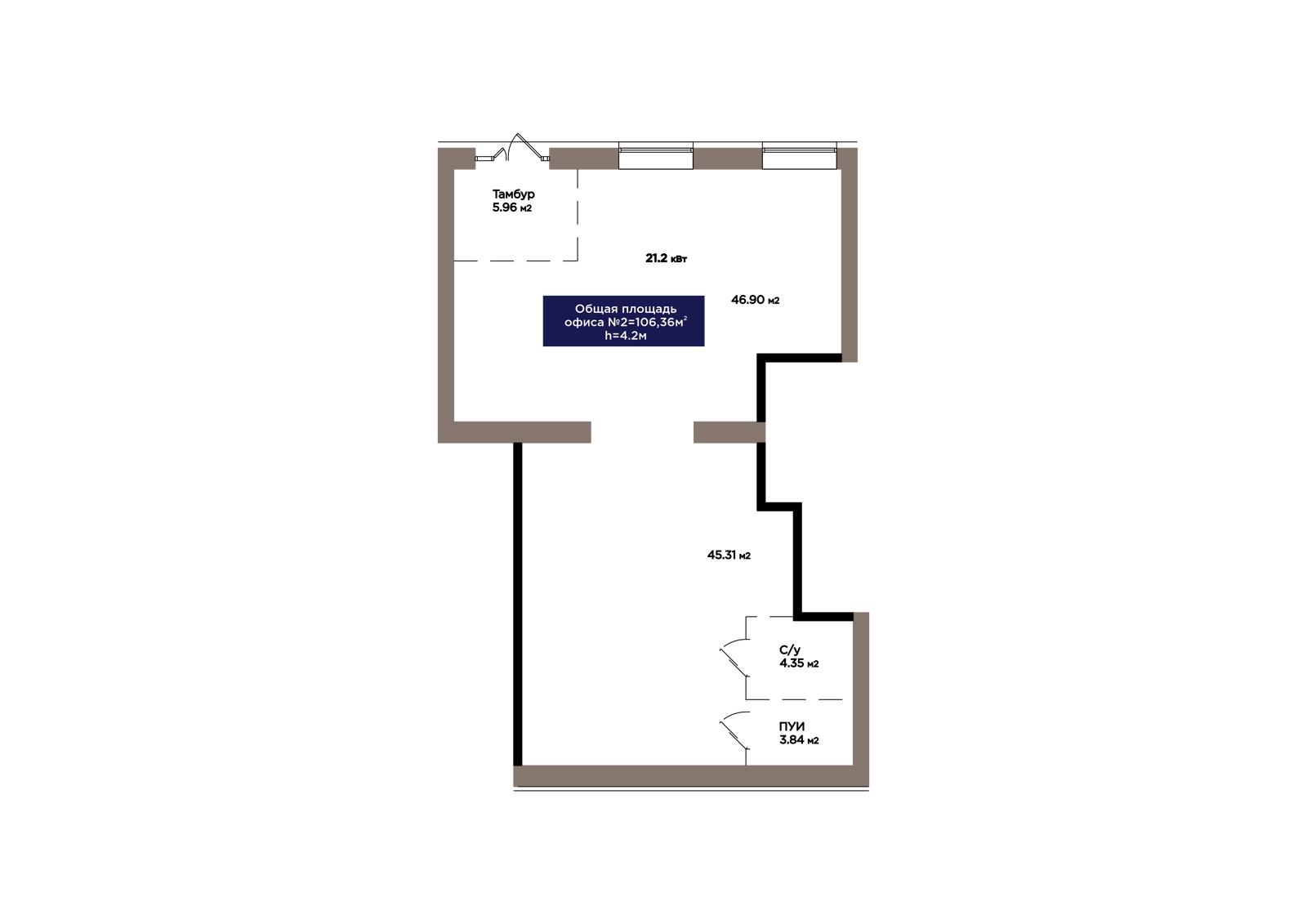 1-комн., 106.36 м², 1 этаж из 9 г. Астана, ЖК OİU