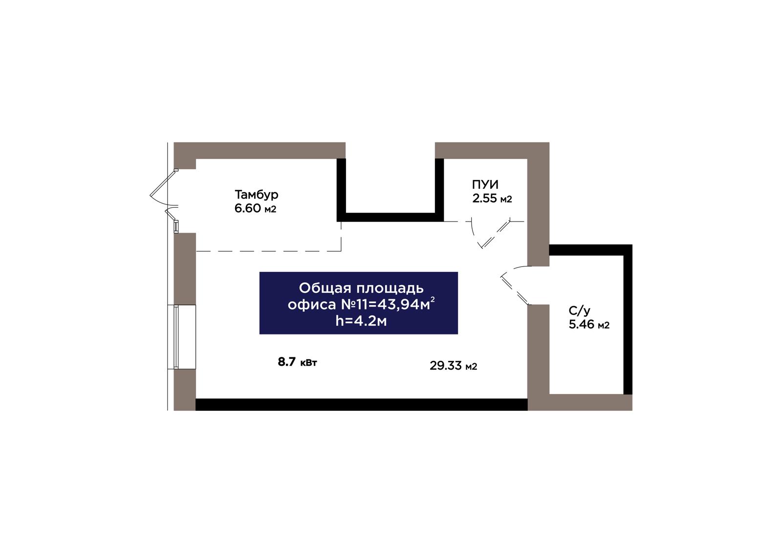1-комн., 43.94 м², 1 этаж из 9 г. Астана, ЖК OİU