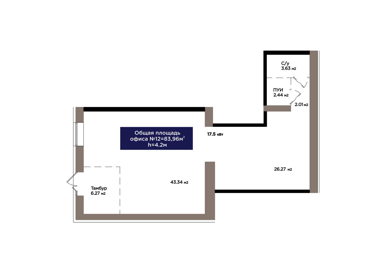 1-комн., 83.96 м², 1 этаж из 9 г. Астана, ЖК OİU