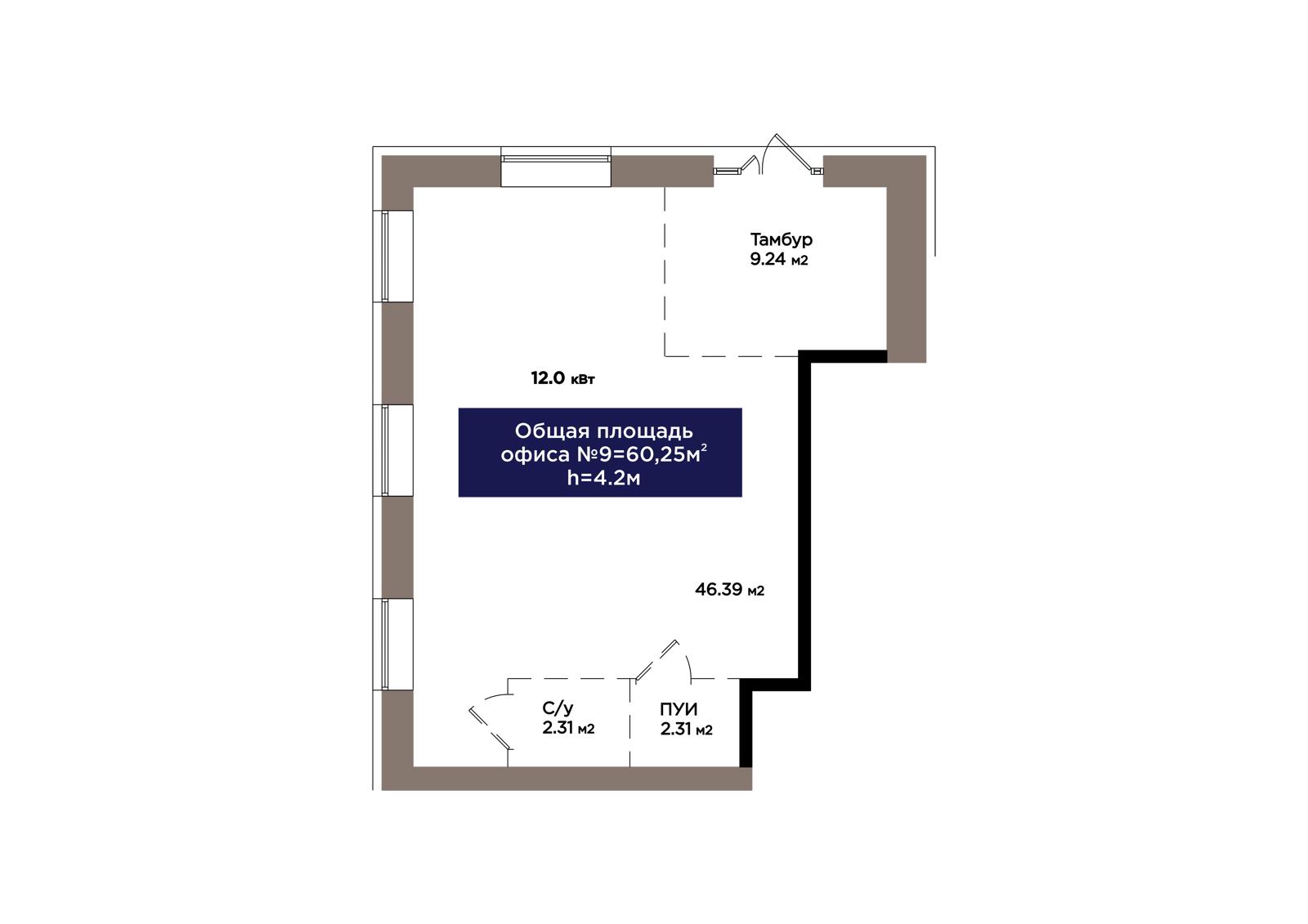 1-комн., 60.25 м², 1 этаж из 9 г. Астана, ЖК OİU