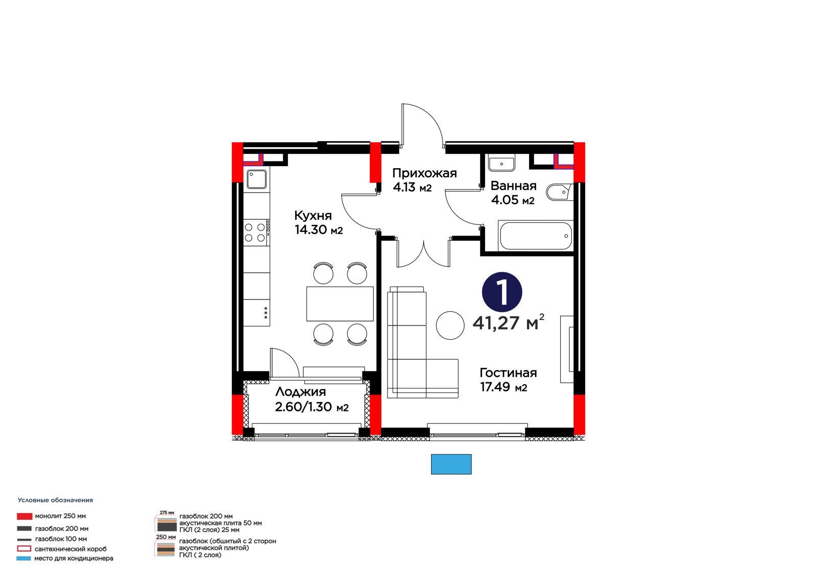 1-комн., 41.27 м², 5 этаж из 9 г. Астана, ЖК Lavita