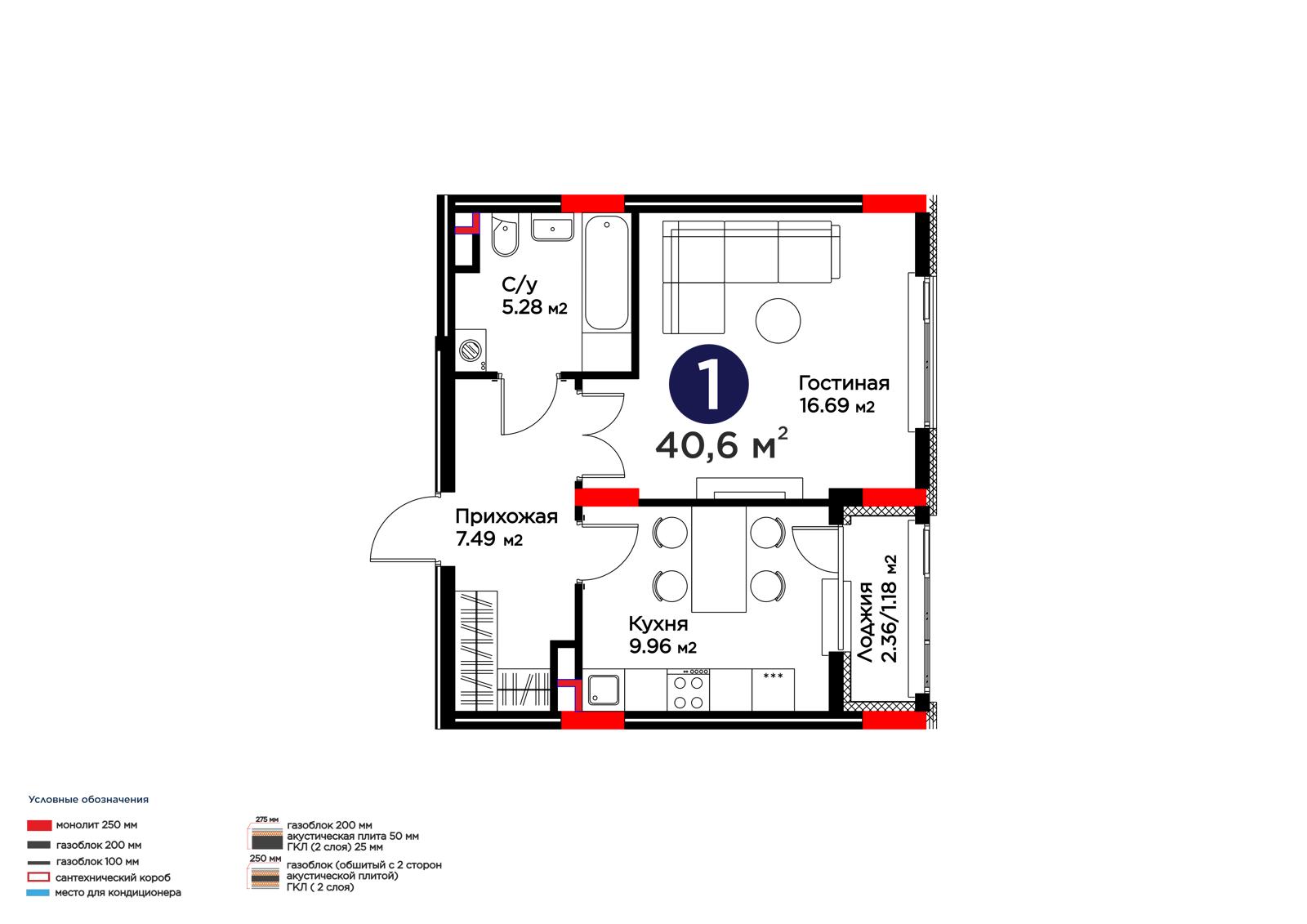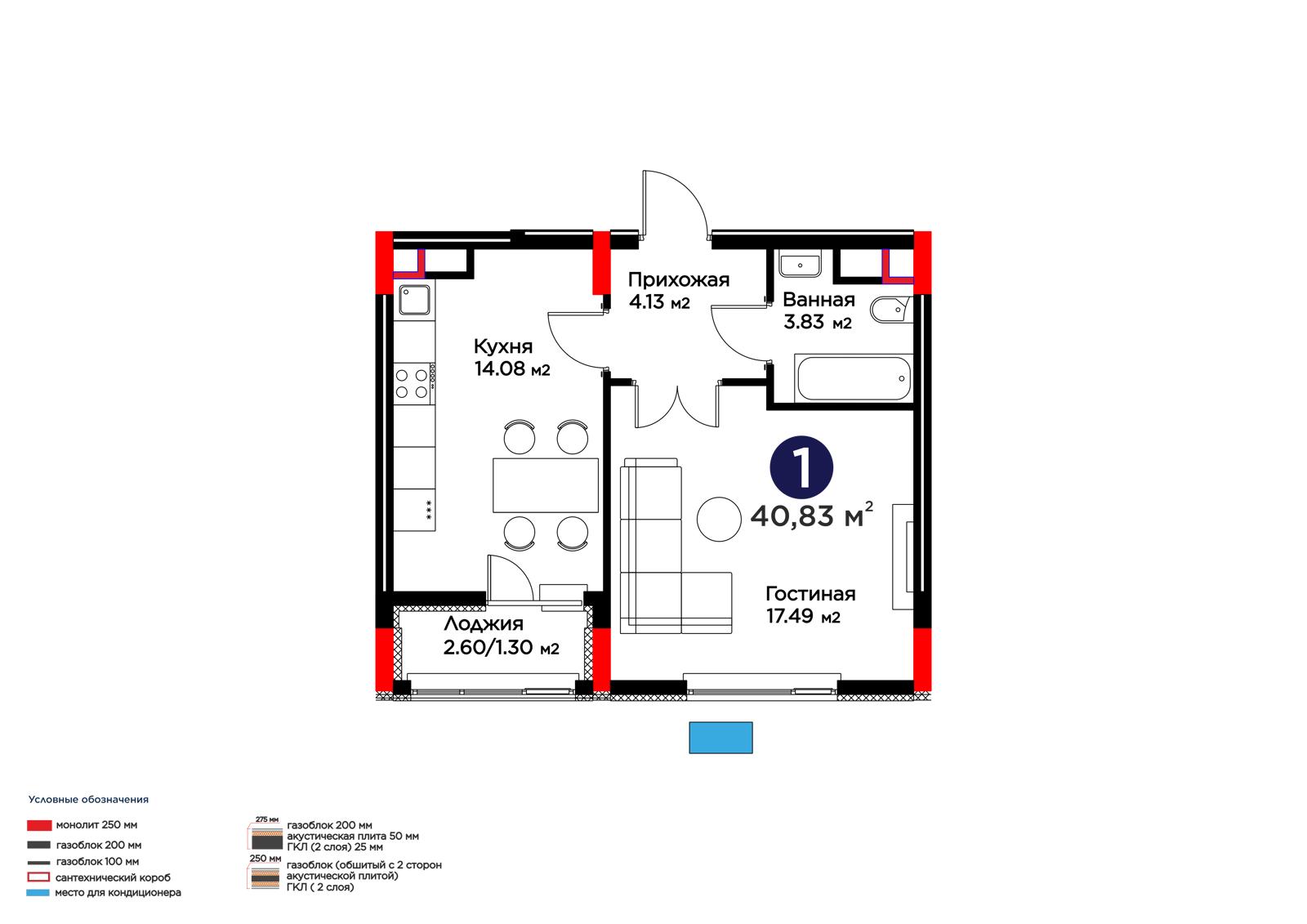 1-комн., 40.83 м², 9 этаж из 9 г. Астана, ЖК Lavita