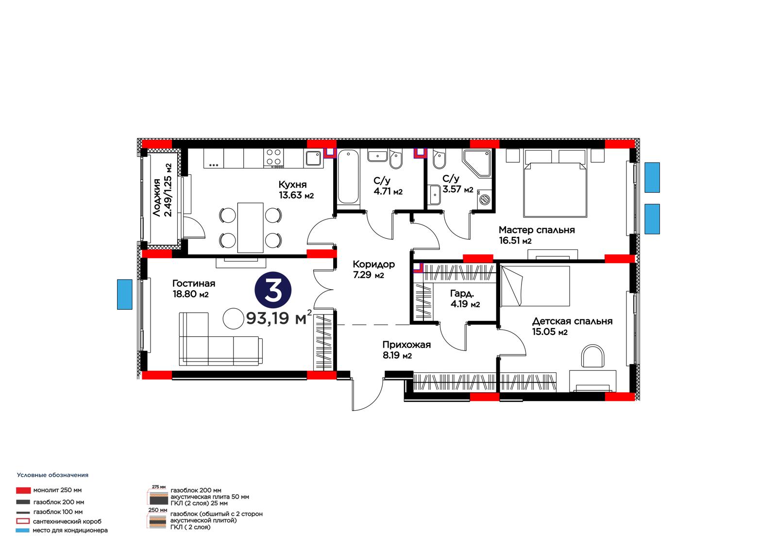 3-комн., 93.19 м², 2 этаж из 9 г. Астана, ЖК Lavita