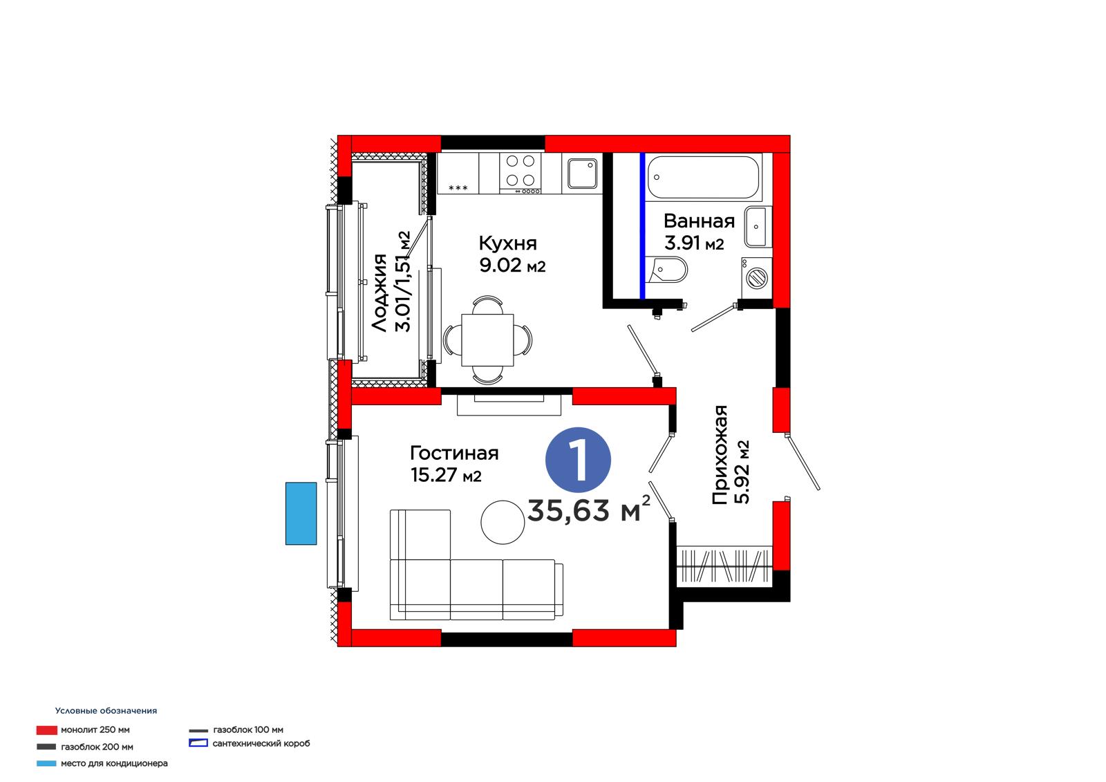 1-комн., 35.63 м², 5 этаж из 12 г. Шымкент, ул. Толеметова ЖК Grand Park. Vita
